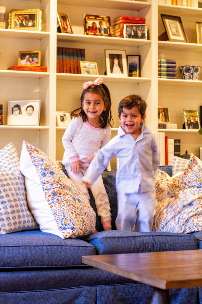 My husband and I love to entertain, but we have two toddlers and two border collies. All of my design decisions have to stand up to sofa jumping, spilled milk and dog hair.